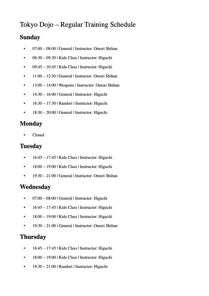 The Tokyo Dojo welcomes visitors who are not regular members. Admission is subject to specified procedures and approval by the Dojo Head.