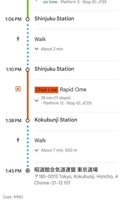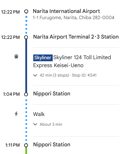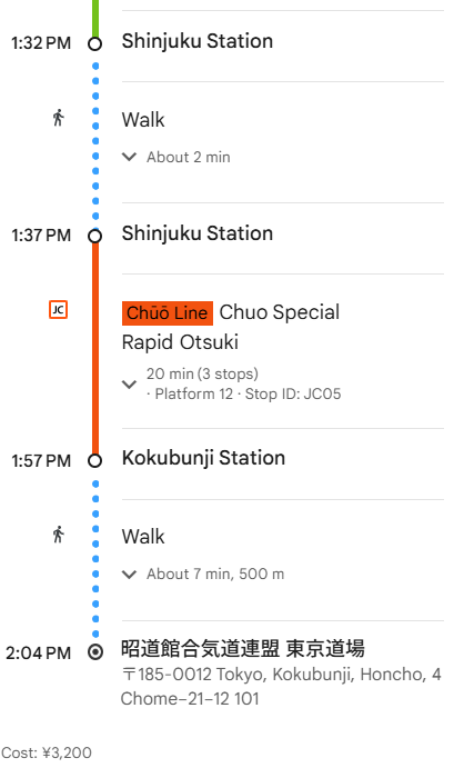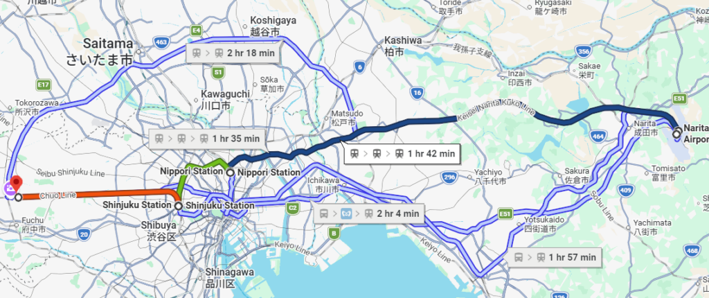 Here is the access from Narita International Airport to the Tokyo Dojo.
