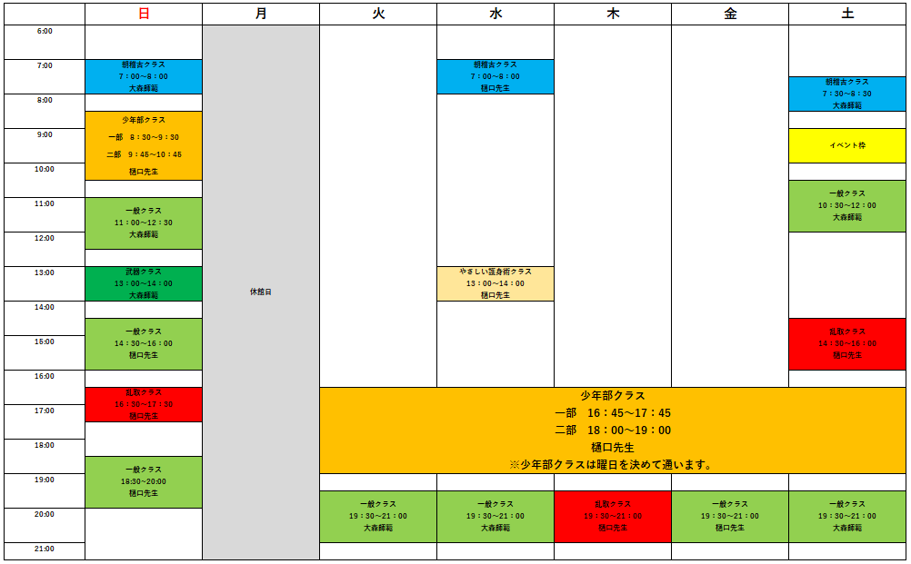 イベントと重なる日は稽古は無い可能性があるため、お知らせをチェックするようにお願いします。
